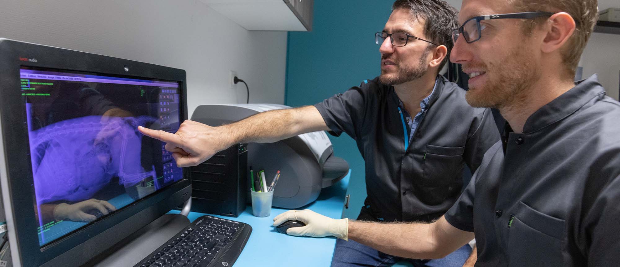 L’ensemble des vétérinaires de la clinique parfait régulièrement sa pratique de l’échographie par le biais de formations continues.